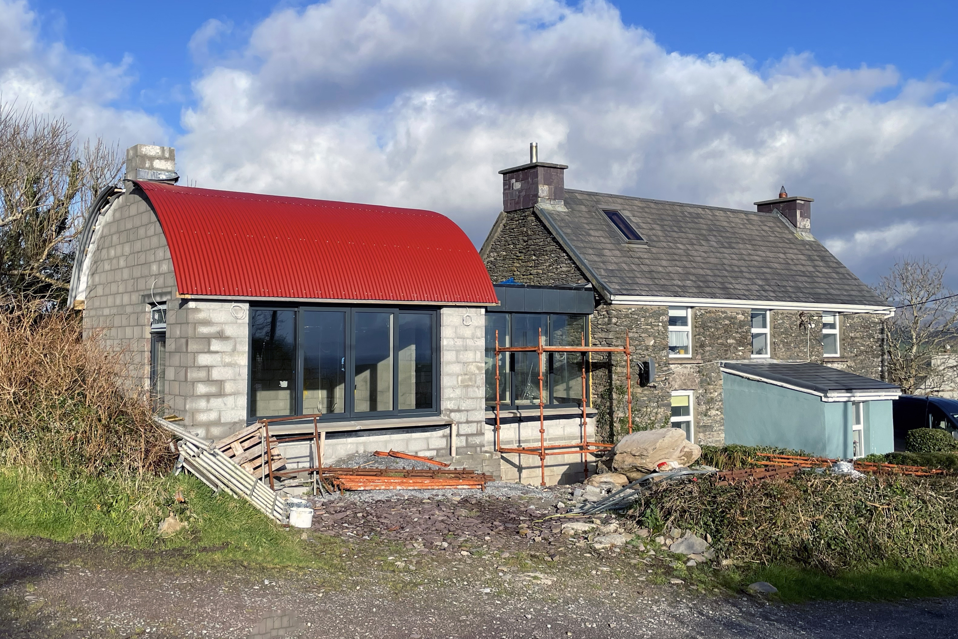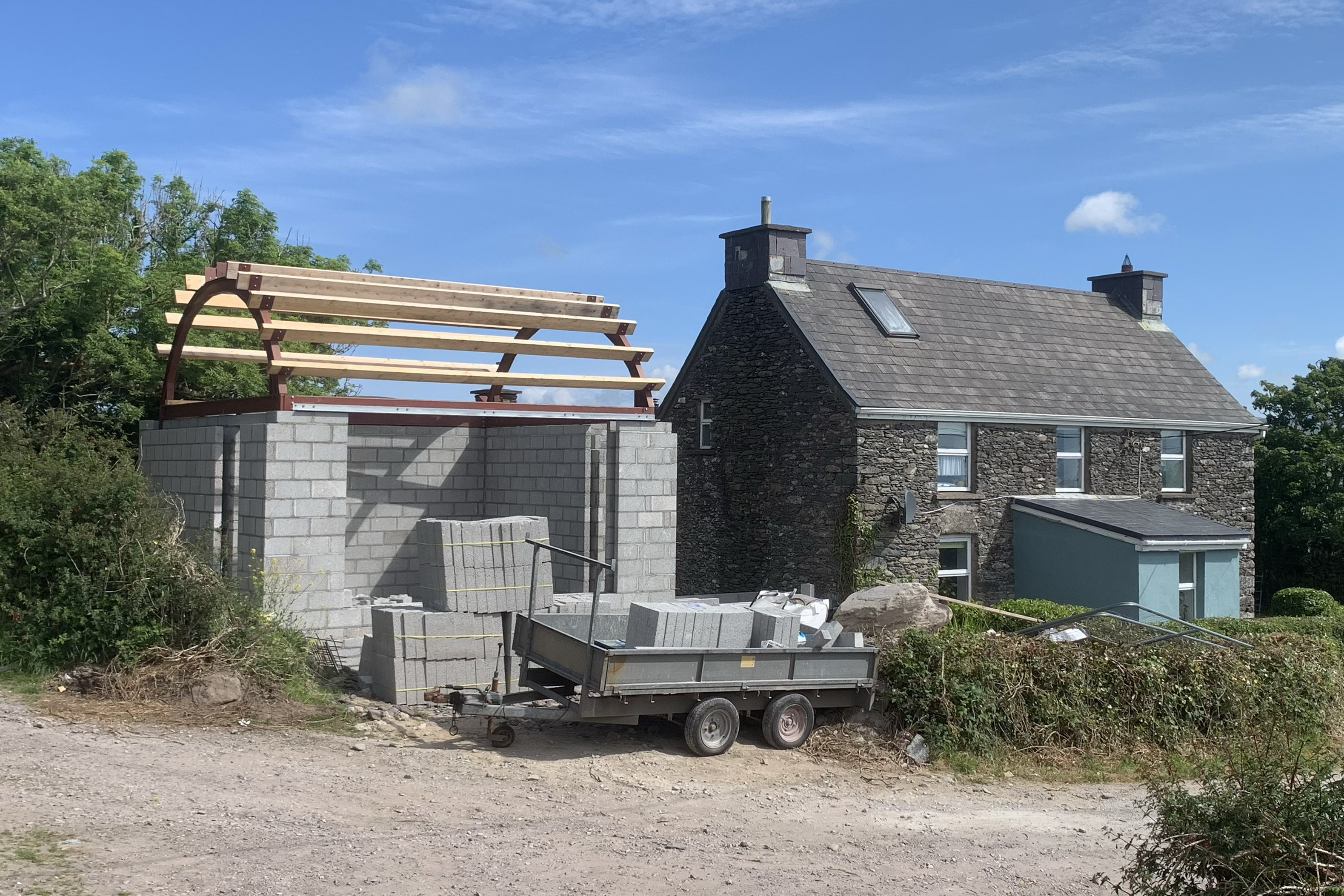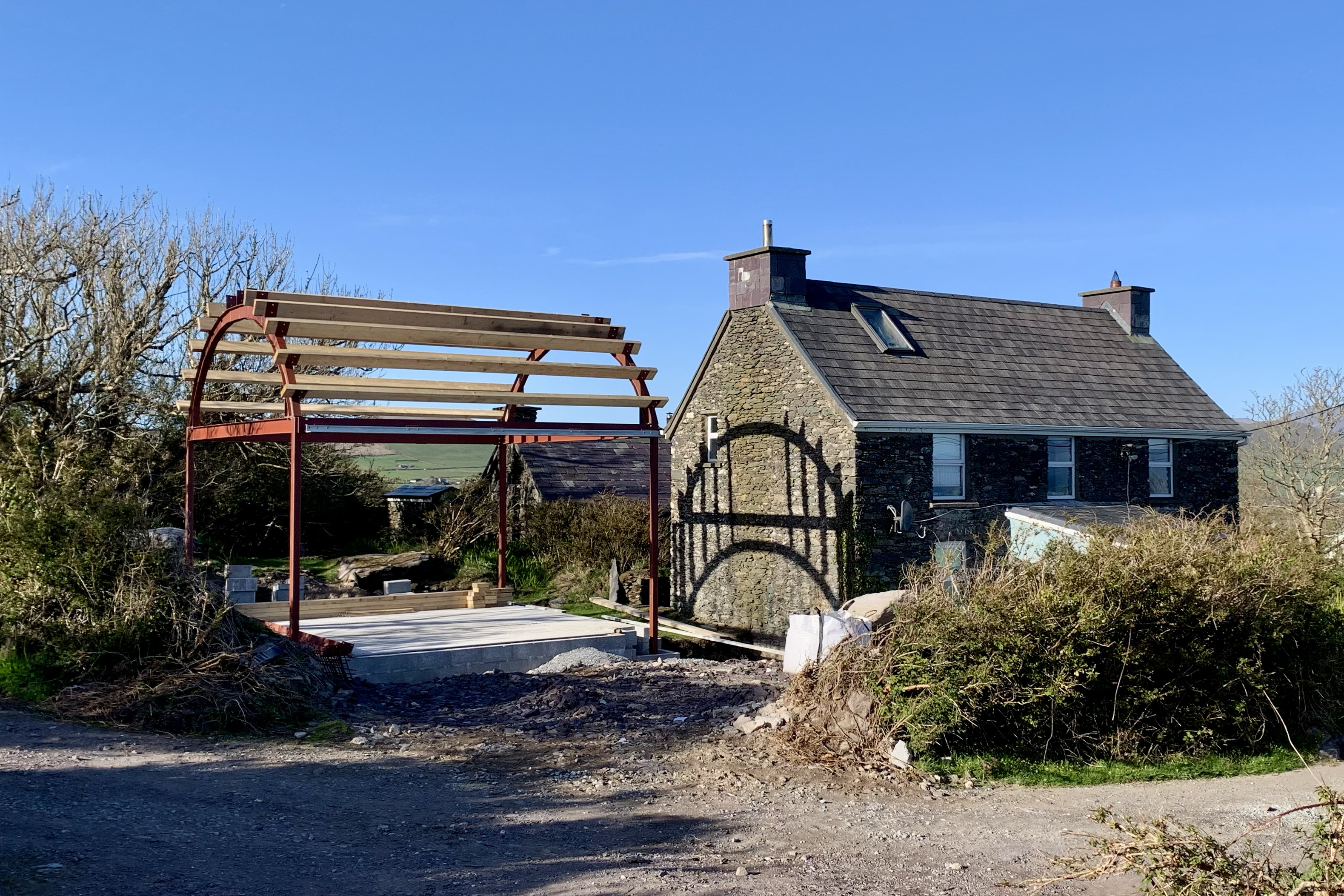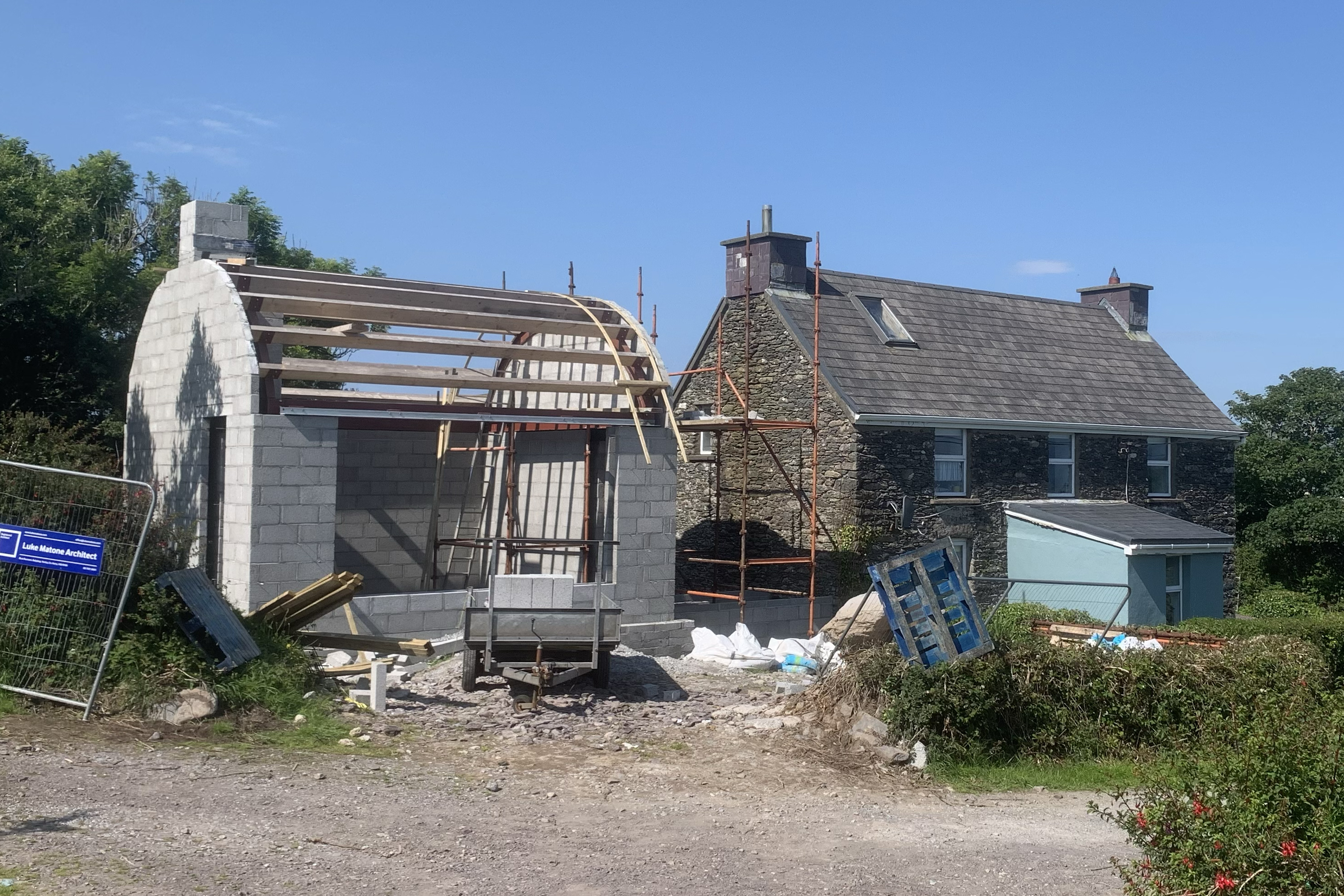 Drawing formal and material inspiration from the single-barrel-vaulted hay barns once commonplace in Kerry’s rural landscape, a new vaulted library is woven into the evolving fabric of a clachan on the slopes of Sliabh an Iolair, overlooking Ceann Trá.